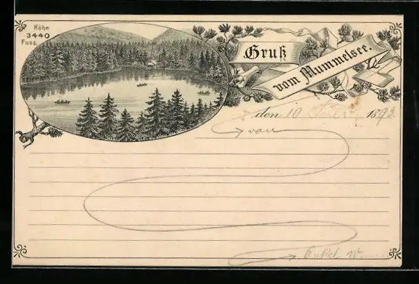 Vorläufer-Lithographie Mummelsee, 1893, Panoramablick auf den See