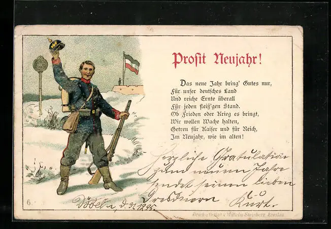 Vorläufer-Lithographie Neujahrsgruss, 1895, Soldat in Uniform