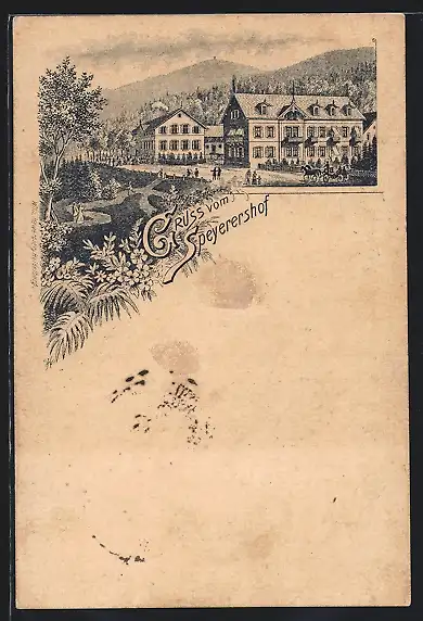 Vorläufer-Lithographie Speyerershof, 1895, Häuser im Ort