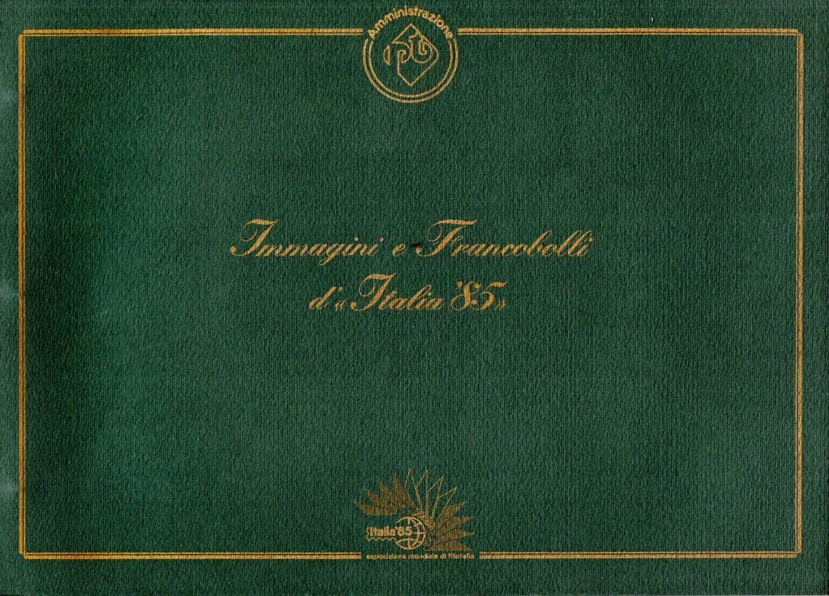 Weltausstellung der Philatelie Italien '85 große Vorläufermappe Bilder und Briefmarken Italiens '85 - Bestehend aus 15 Seiten enthält die philatelistischen Gedenkausgaben der Ausstellung + Postkarten und Zettel - Uncommon Cod. 50/Web
