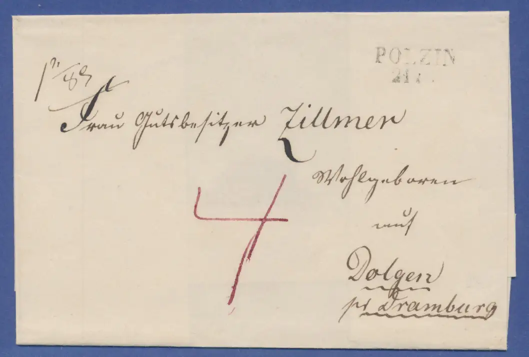 Vorphila-Brief mit Stempel POLZIN 21... , undatiert