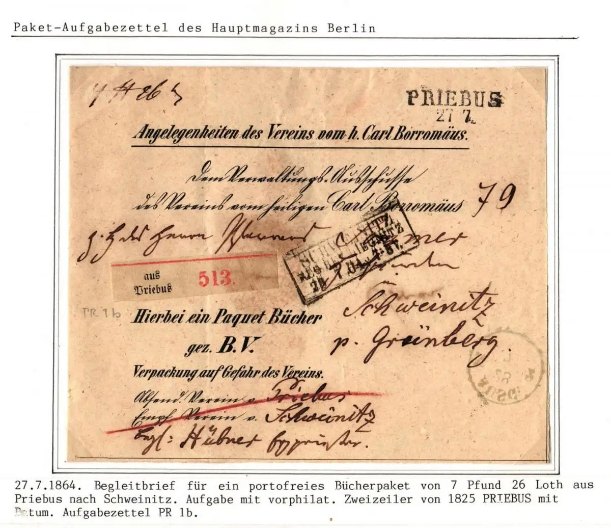 Vorphila Paketbegleitbrief von 1864 für eine portofreie Büchersendung #IB643