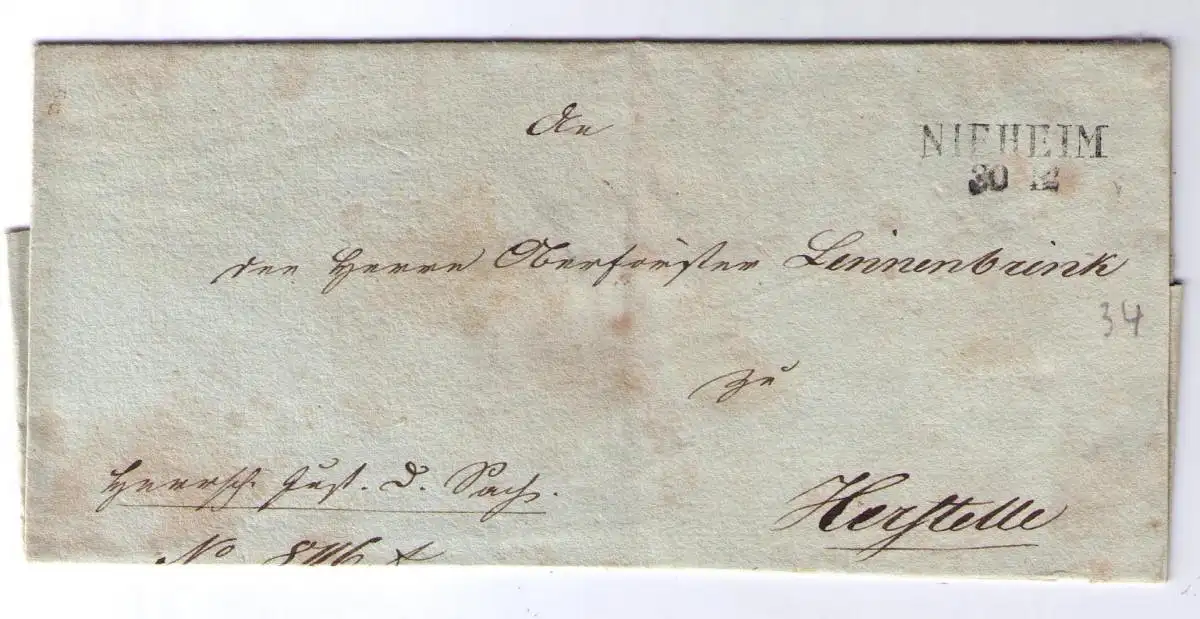 Vorphila Preußen - L2 NIEHEIM, an einen Oberförster in HERSTELLE