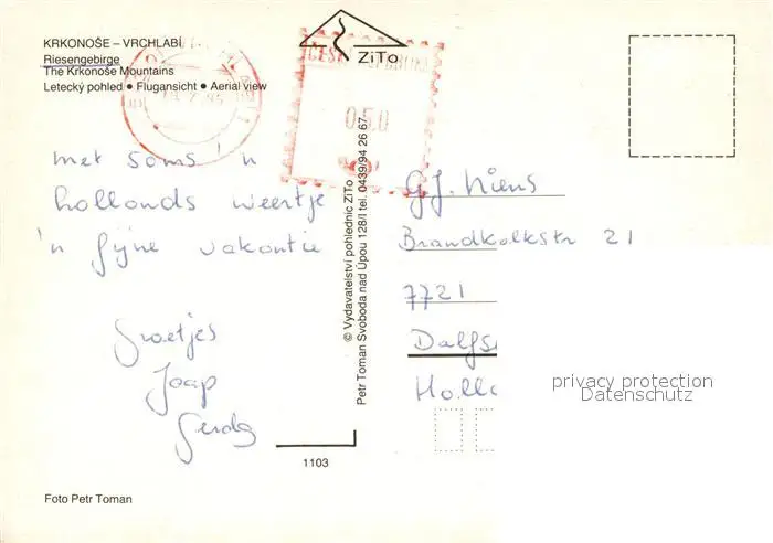 Vrchlabi Fliegeraufnahme Vrchlabi postalisch gelaufen nach 1965 Erhaltung siehe scans [WerneD78] WernPID7