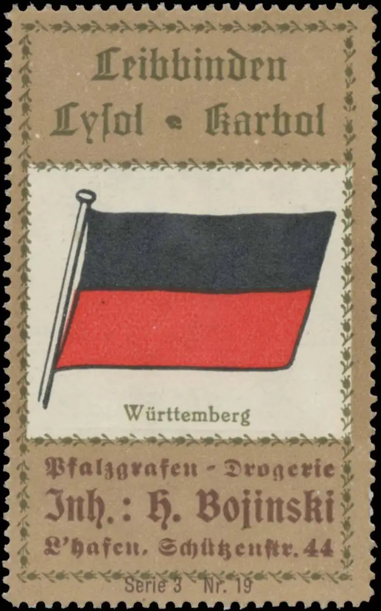 Leibbinden, Lysol, Karbol, Pfalzgrafen Drogerie Inhaber: H. Bojinski , Größe/Zustand: 6x4 , guter Zustand, Original alte Reklamemarke die seinerzeit für die Werbung benutzt wurde