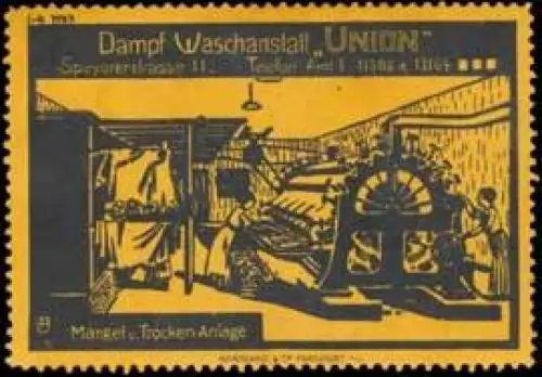 Mangel- und Trocken-Anlage, Größe/Zustand: 4x6 , guter Zustand, Original alte Reklamemarke die seinerzeit für die Werbung benutzt wurde