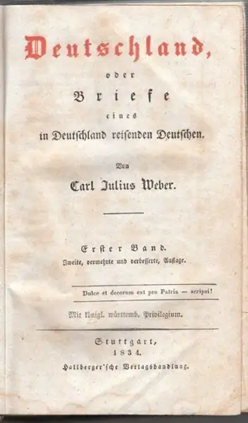 Stgt., Hallberger 1834. 2. verm. u. verb. Aufl. 4 Bde. 2 Bll., XXXIV, 620 S., 1 Bl.; 2 Bll., 690 S., 1 Bl.; 2 Bll., 778, IV S.; 876, IV S. Pbde. d. Zt. m. Rückensch. Tit. d. 4. Bds. fehlt. Berieb. 1 Hinterdeckel m. Fehlstelle. - (Sämmtl. Werke 4-7)