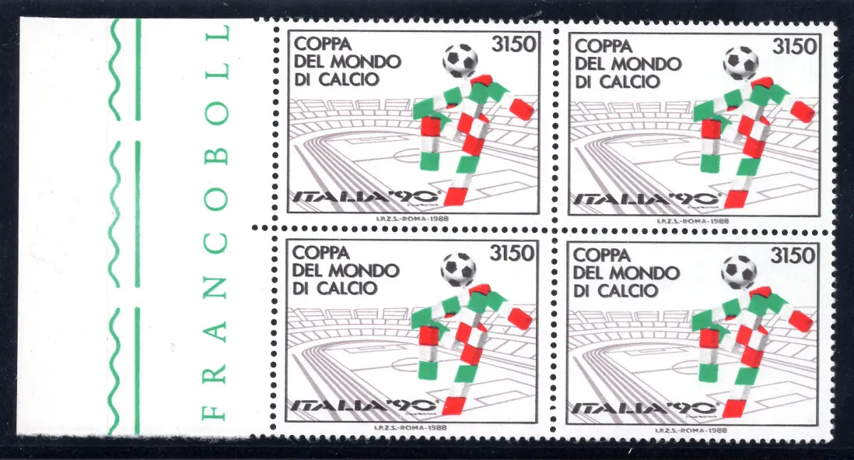 MNH - Vollgummi - - Weltmeisterschaft Italien '90 Lire 3.150 Nr. 1835 Viertel b. von f. mit gut sichtbarem Doppeldruck von Schwarz - Gelegenheit für Sammlungen zum Thema Fußball Cod.757/182