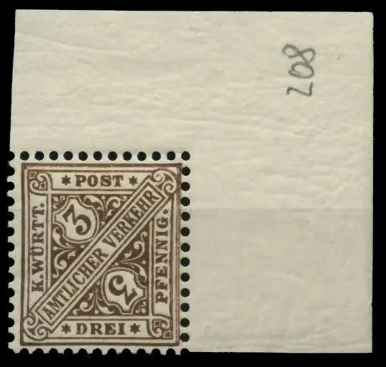 WÜRTTEMBERG DIENST STAAT Nr 208 postfrisch ECKE-ORE 710F02