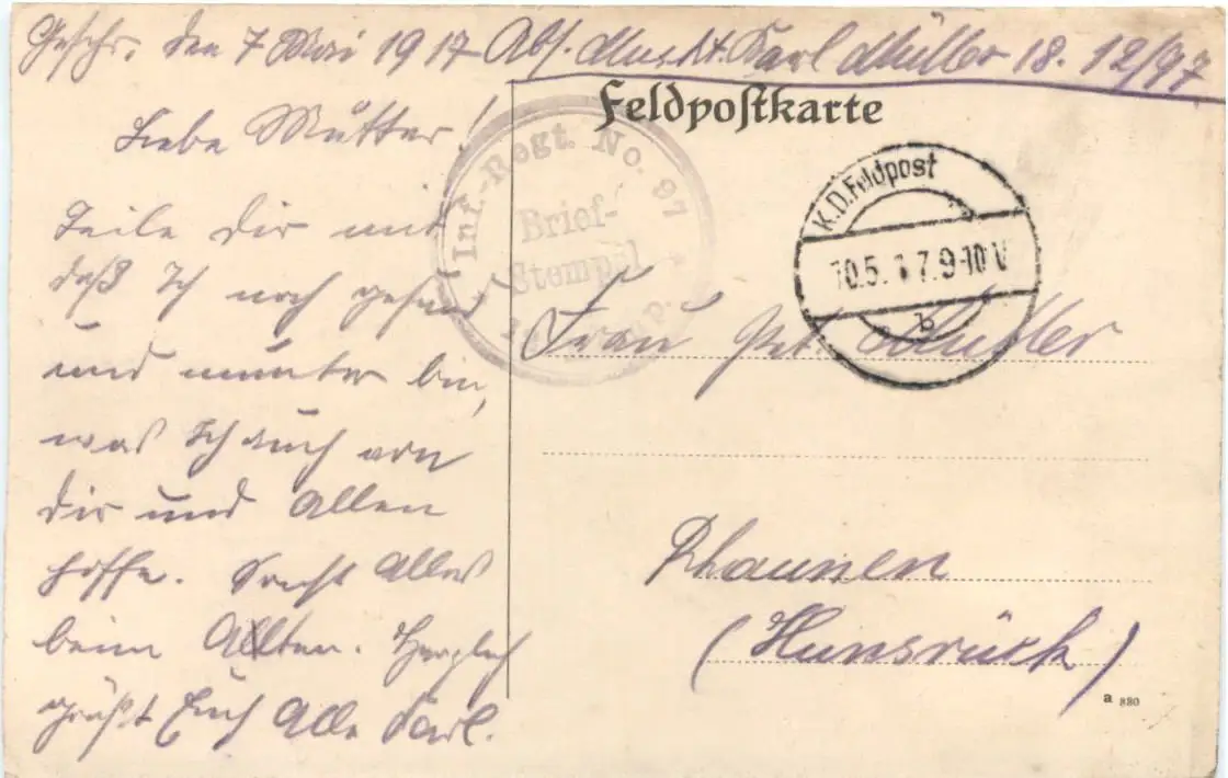WW1 Fernsprechunterstand im Walde - Feldpost -717340