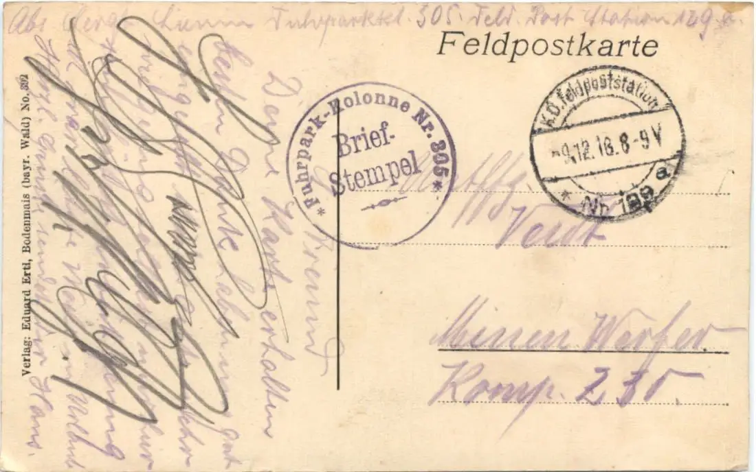WW1 Soldaten - Feldpost Fuhrpark Kolonne 305 -672828