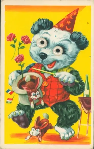 Wackelaugen Ak Vermenschlichtes Tier als Zauberer, Kaninchen, Zirkus, Rosen
