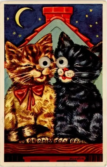 Wackelaugen Künstler Ak Michaelis, Zwei Katzen, Mondschein