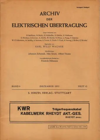 Archiv der elektrischen Übertragung; Band 9, Dezember 1955, Heft 12; Elektronik; Technik; Karl Willy Wagner