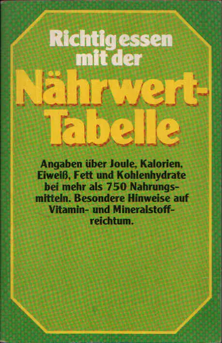 Richtig essen mit der Nährwerttabelle Angaben über Joule, Kalorien, Eiweiß, Fett und Kohlenhydrate bei mehr als 750 Nahrungsmitteln. Besondere Hinweise auf Vitamin- und Mineralstoffreichtum