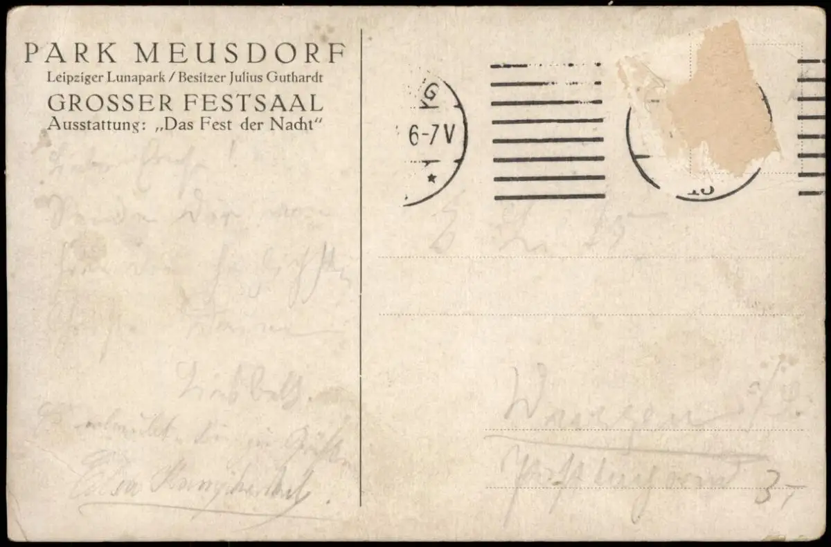 Wahren-Leipzig PARK MEUSDORF GROSSER FESTSAAL Leipziger Lunapark 1916