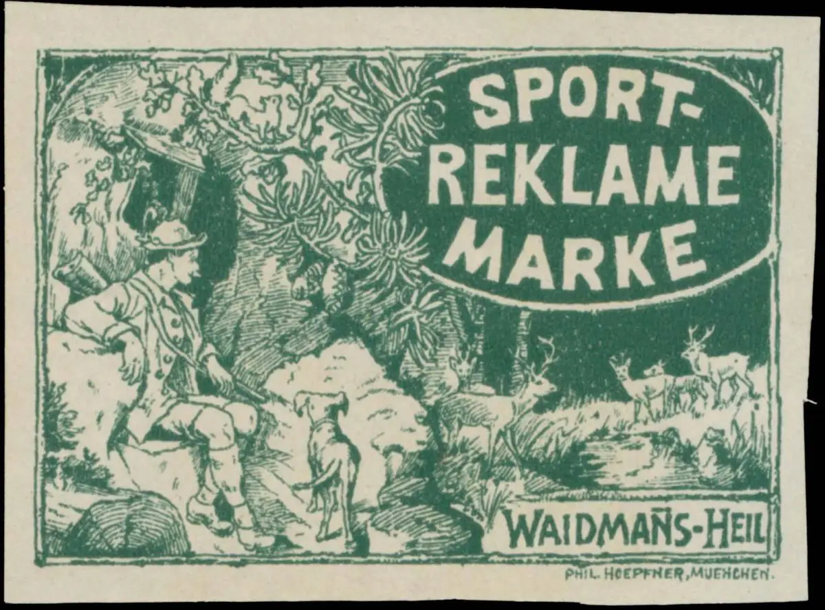Jagd, Hund, Sport-Reklamemarke, grün, Größe/Zustand: 4x6 , guter Zustand, Original alte Reklamemarke die seinerzeit für die Werbung benutzt wurde