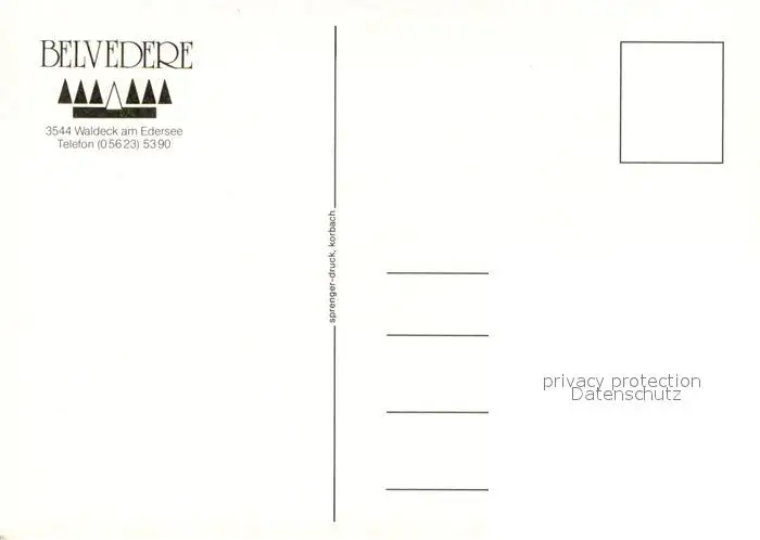 Waldeck_Edersee Hotel Restaurant Belvedere Waldeck Edersee postalisch nicht gelaufen nach 1965 Erhaltung siehe scans [FriedD77] Frierer