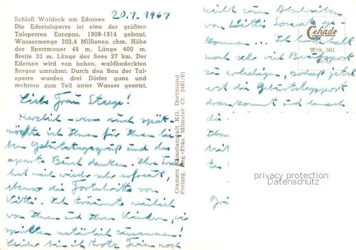 Waldeck_Edersee Schloss Fliegeraufnahme Waldeck Edersee postalisch nicht gelaufen 1967 Erhaltung siehe scans [FriedD77] Frierer