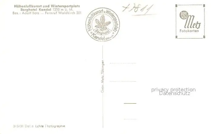 Waldkirch_Breisgau Berghotel Kandel Waldkirch Breisgau postalisch nicht gelaufen 1921-1965 Erhaltung siehe scans [WerneD78] WernPID7