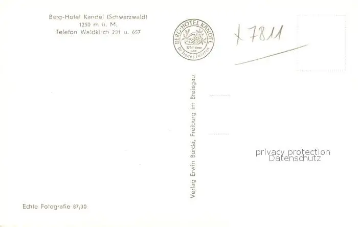 Waldkirch_Breisgau Berghotel Kandel Waldkirch Breisgau postalisch nicht gelaufen 1921-1965 Erhaltung siehe scans [WerneD78] WernPID7