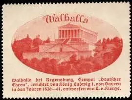 Walhalla bei Regensburg, Tempel - Deutscher Ehren - , errichtet von König Ludwig I. von Bayern in den Jahren 1830-41, entworfen von L. v. Kienze., Größe/Zustand: 5x6 , guter Zustand, Original alte Reklamemarke die seinerzeit für die Werbung benutzt wurde