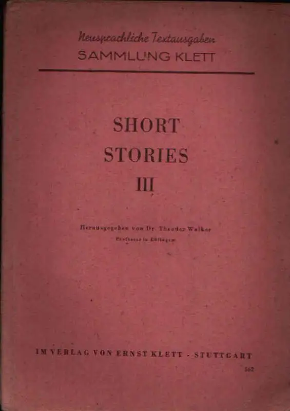 Short Stories; Theodor Walker; Schulbuch; Stories; Neusprachliche Textausgaben; Nathaniel Hawthorne; Peter Goldthwaite´s Treasure; Washington Irving; Rip van Winkle; Rudyard Kipling; Moti Gui; Sammlung Klett