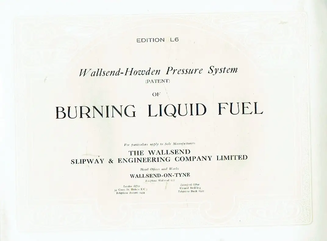 Titel: Wallsend-Howden Pressure System of Burning Liquid Fuel