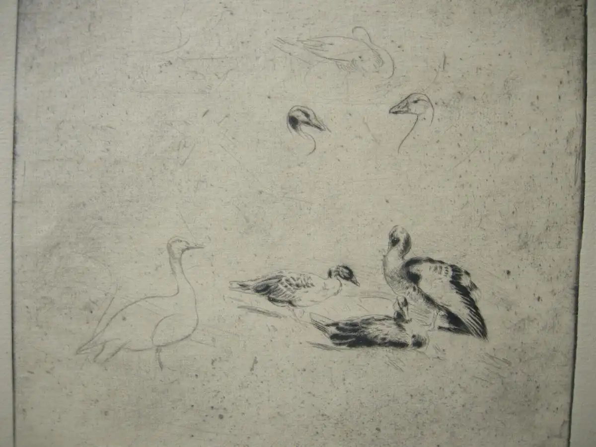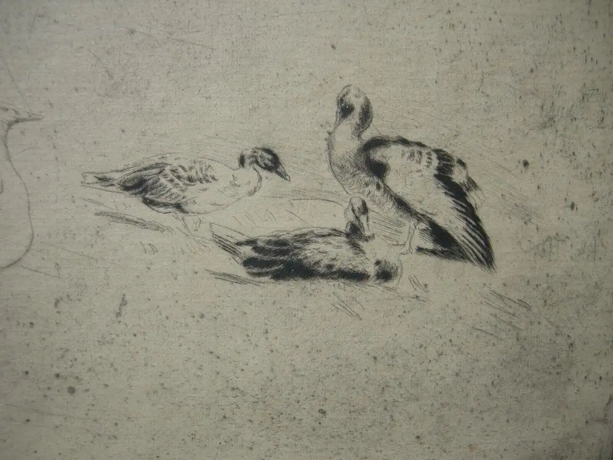 Walter Klemm (1883-1957) Gänsestudie Orig Radierung signiert 1915 Probedruck