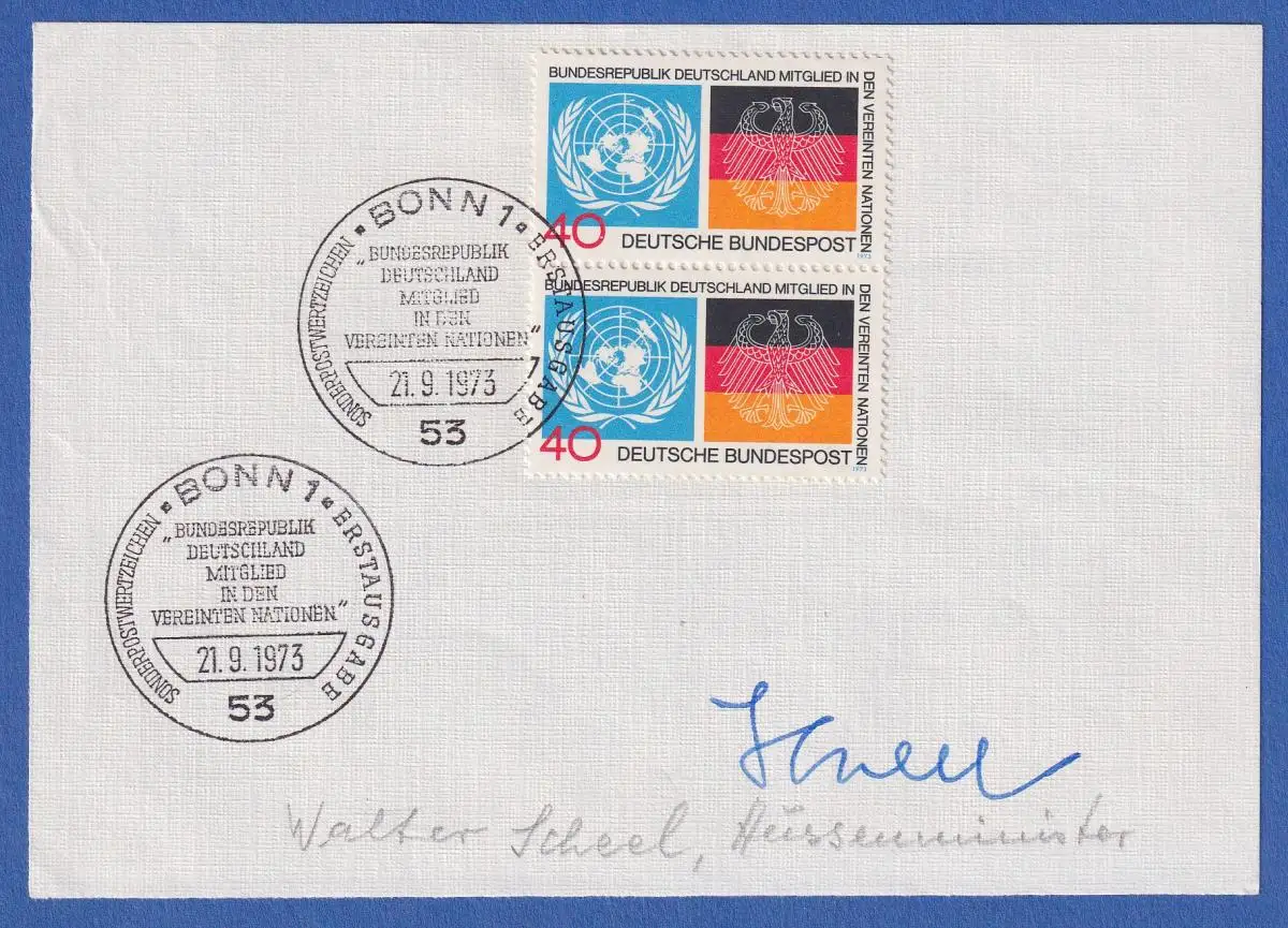 Mit Briefmarke Vereinte Nationen und Sonderstempel, So.- ⊙ BONN 21.9.1973