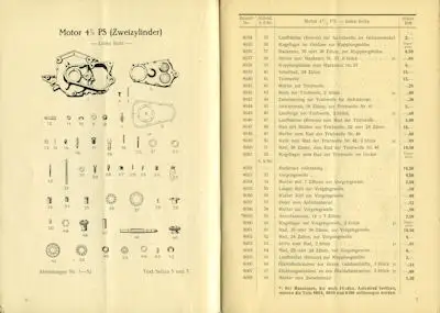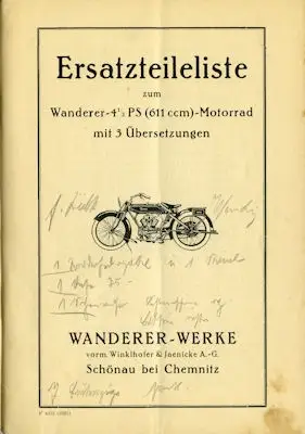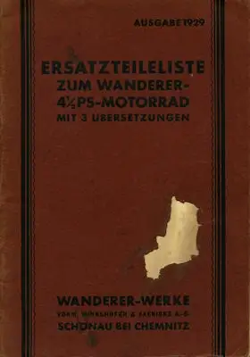 Wanderer 4,5 PS-Motorrad mit 3 Übersetzungen Ersatzteilliste 3.1929