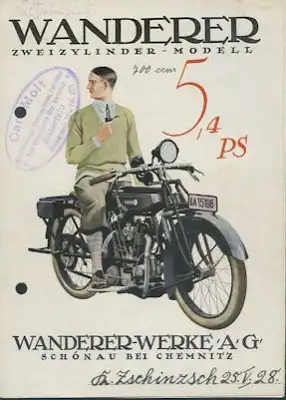 Wanderer Zweizylinder Modell 5,4 PS Prospekt 10.1926