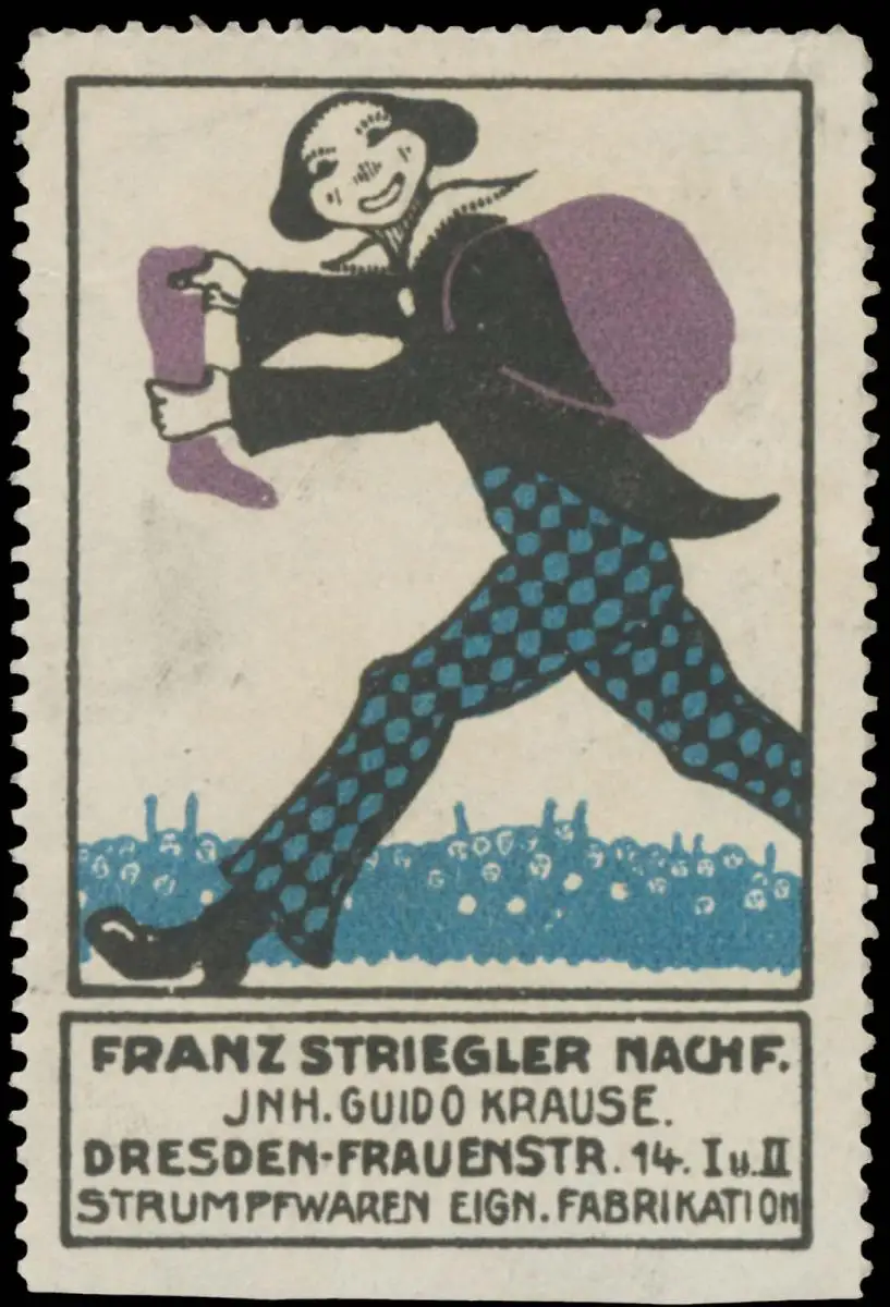 Strumpfwaren, Inhaber: Guido Krause, Frauenstraße 14, Größe/Zustand: 6x4 , fleckig, Original alte Reklamemarke die seinerzeit für die Werbung benutzt wurde