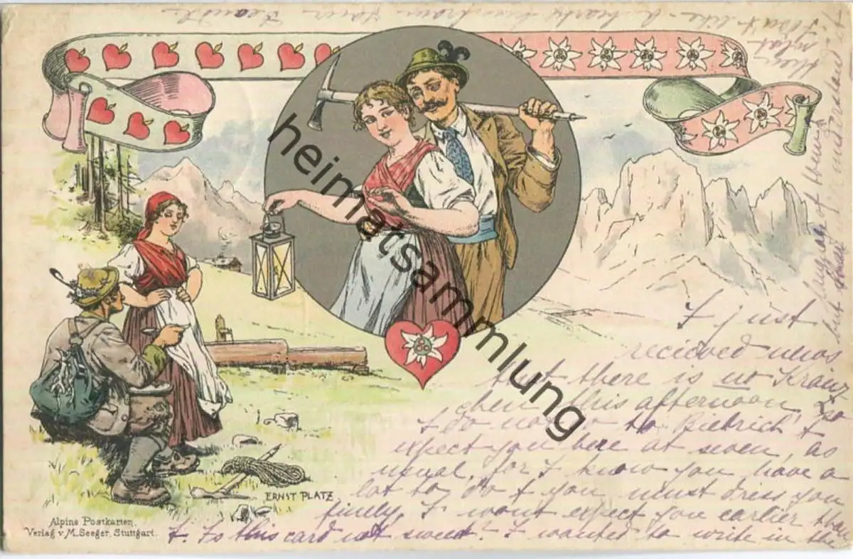 Wanderer - signiert Ernst Platz - Alpine Postkarten - Verlag M. Seeger Stuttgart