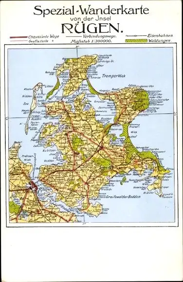 Wanderkarte Ak Insel Rügen, Gesamtansicht