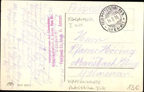 Zustand, siehe Scan, gelaufen, 1916 - ca 9 cm X 14 cm