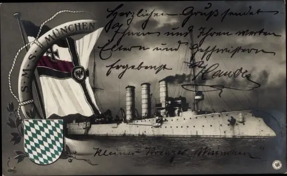 Wappen Ak Deutsches Kriegsschiff, SMS München, Kleiner Kreuzer
