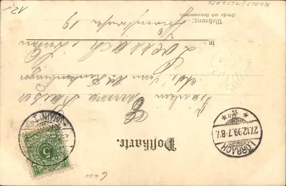 Zustand, siehe Scan, gelaufen, 1899 - ca 14 cm X 9 cm