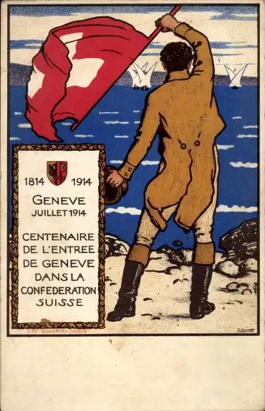 Wappen Ak Genève Genf Stadt, Centenaire de l'entree de Geneve dans la Confederation Suisse 1914