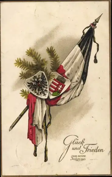 Wappen Ak Glückwunsch Neujahr, Patriotik Kaiserreich, Fahne
