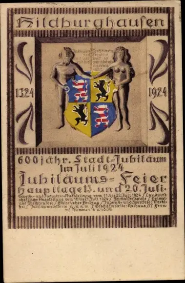 Wappen Ak Hildburghausen in Thüringen, 600jh Stadtjubiläum 1924