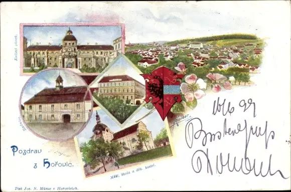 Wappen Ak Horovice Horowitz Mittelböhmen, Schloss, Totalansicht, Kirche