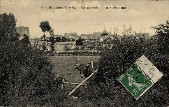 Wappen Ak Houdan Yvelines, Durchsicht zum Ort, Kuh