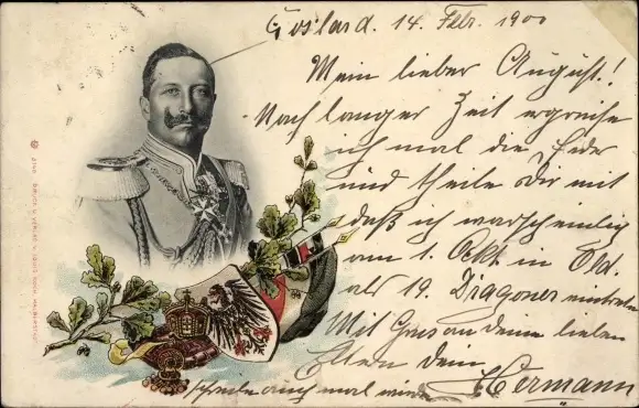 Wappen Ak Kaiser Wilhelm II., Portrait, Eichenlaub