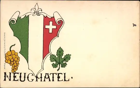 Wappen Ak Kanton Neuenburg Schweiz, Laubblatt, Weintrauben