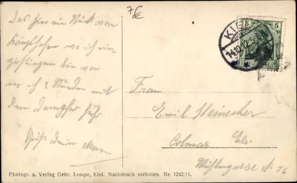 Zustand, siehe Scan, gelaufen, 1912 - ca 14 cm X 9 cm