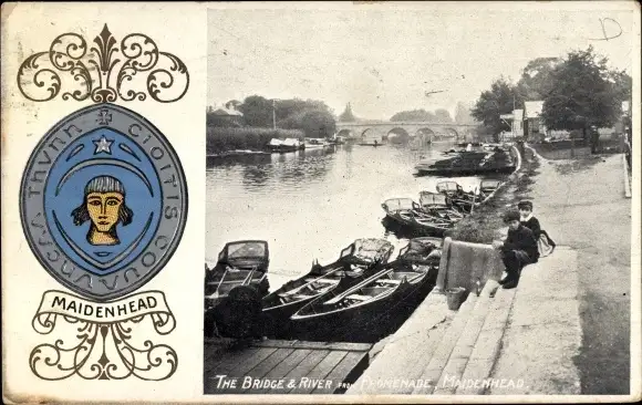 Wappen Ak Maidenhead South East England, The Bridge and River from Promenade