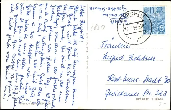 Zustand, siehe Scan, gelaufen, 1959 - ca 14 cm X 9 cm