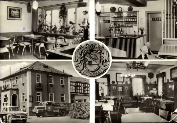 Wappen Ak Plothen in Thüringen, Gasthaus zum Plothenteich, Innenansichten