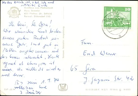 Zustand, siehe Scan, gelaufen- Inh.: Hans Semmler - ca 15 cm X 10 cm